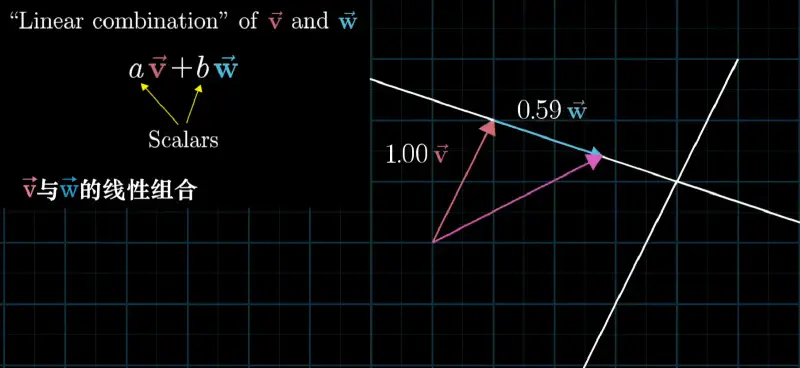 - 线性组合:两个数乘向量的和成为这两个向量的线性组合