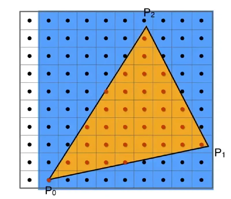 - 黑色点:在三角形外的像素(忽略)