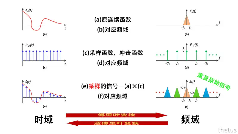 采样间隔 T 增大 → 采样率 fs=1/T 降低 → 原始频谱的周期延拓周期缩短 → 相邻频谱副本之间的保护间隔减小