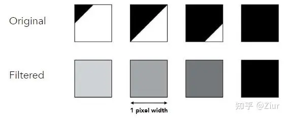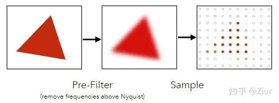 原始连续几何信号 → 预滤波(Pre-Filter) → 采样(Sample) → 抗锯齿结果