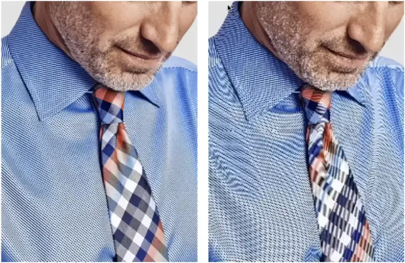 摩尔纹 左图跳过奇数行和奇数列后得到右图