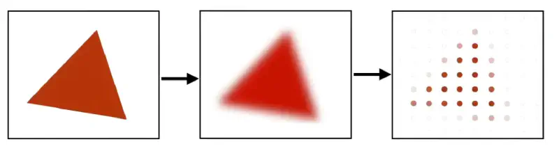| 原始三角形(左) | 连续的几何信号,边缘锐利突变 | 包含大量高频成分,直接采样会产生严重走样(锯齿) | 边缘锐利,无过渡 |
