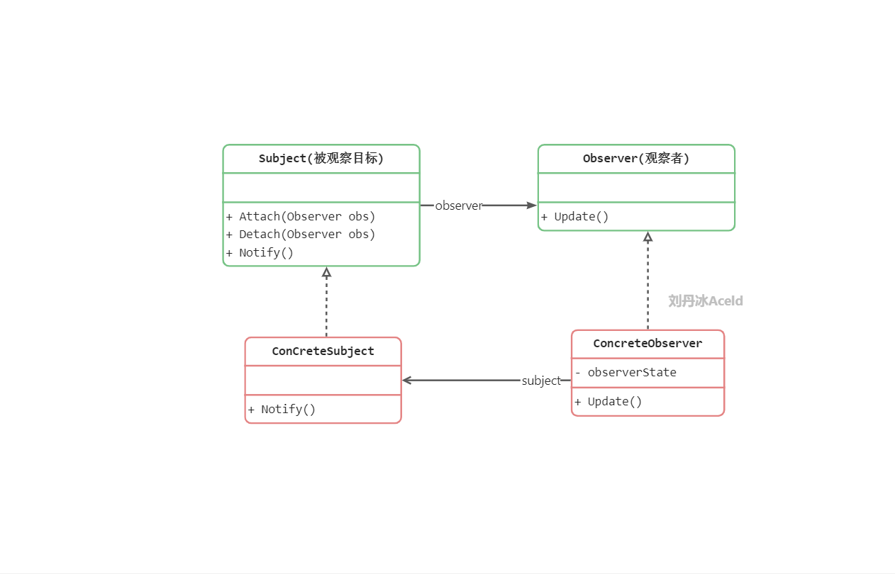 ConcreteSubject(具体被观察者或目标,具体主题): 被观察者的具体实现。包含一些基本的属性状态及其他操作。
