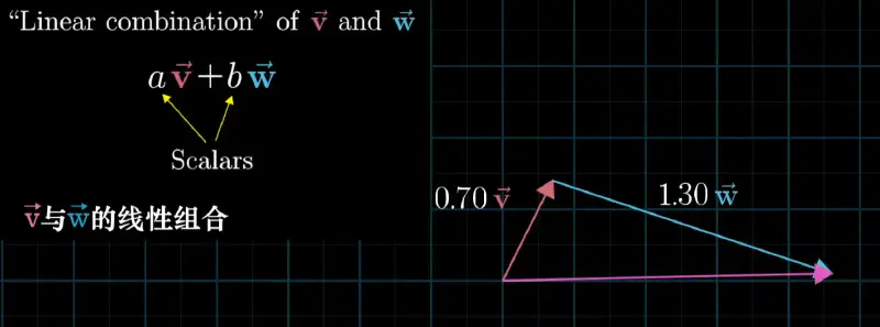 - 线性组合:两个数乘向量的和成为这两个向量的线性组合