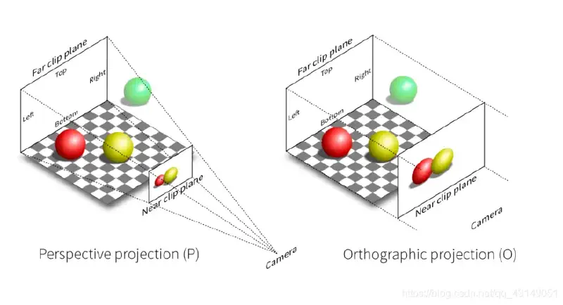 简单来讲,透视投影相当于两点透视或三点透视,有透视畸变。正交投影相当于是基于坐标的轴测图