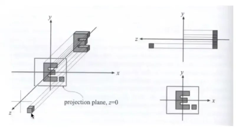 - 正交投影(Orthogonal projection)变换:透视线平行