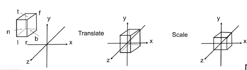 [l, r] × [b, t] × [f, n](左右 X 下上 X 远近)映射到立方体