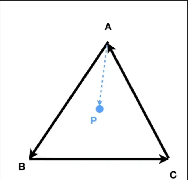 我们以图中的三角形 ABC 和内部点 P 为例。
