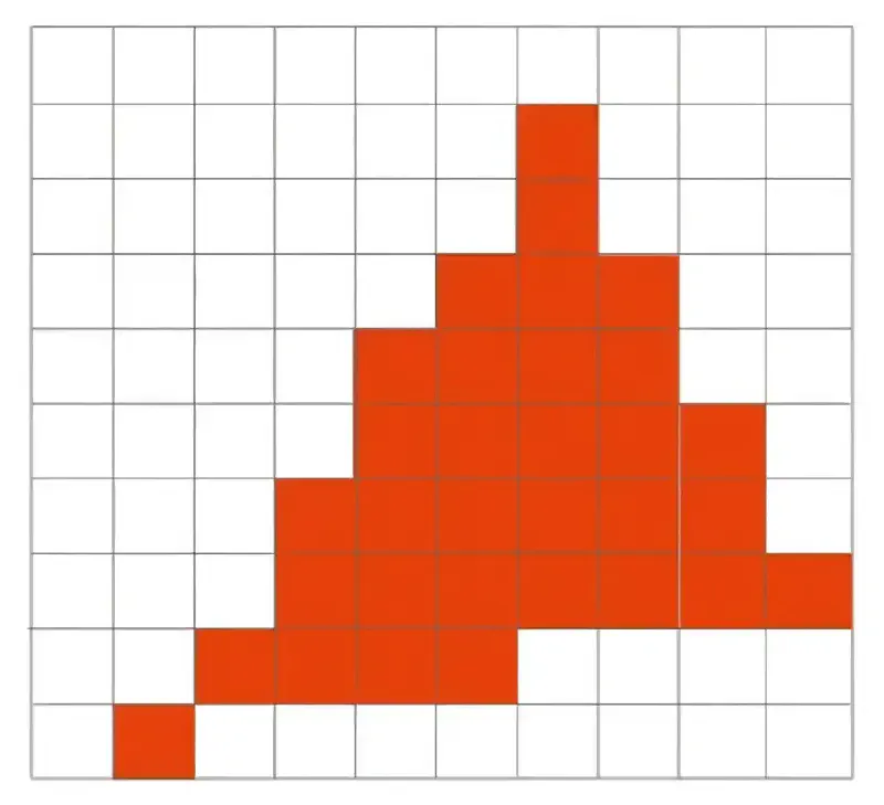 🔍 核心规则: 看“格子中心” 对每一个小格子,只检查它的正中心点: ✅ 如果花的轮廓盖住了中心点 → 在这个格子里绣一针。 ❌ 如果没盖住 → 不绣,留空。