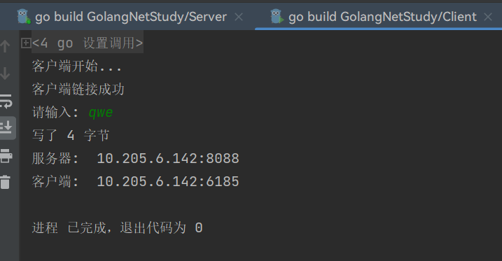 fmt.Println("服务器: ", conn.RemoteAddr().String()) //输出服务器和IP和端口号结束