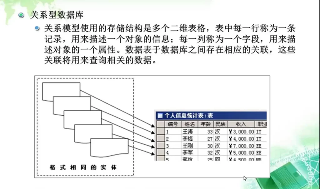 属性: 二维表中的列称为属性,上图里的“编号”, “姓名” , “年龄” 等就是属性