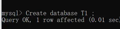 Create database T1 ; #创建一个名为"T1"的数据库创建成功会显示这个: