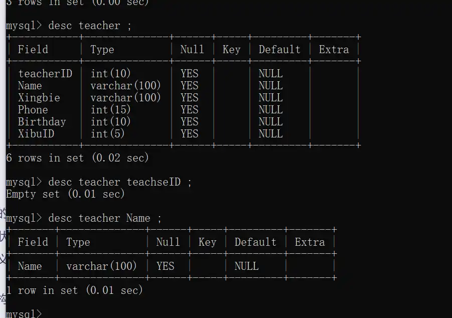 如果该行没有指定数据,那么系统将默认值赋给该列,如果我们不设置默认值,系统默认为NULL。
